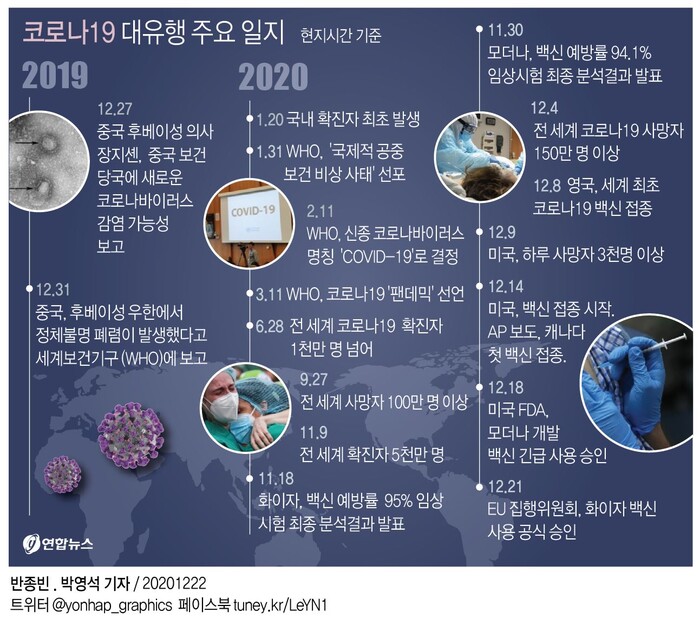 ▲ 코로나19 대유행 주요 일지. [그래픽= 연합뉴스] |