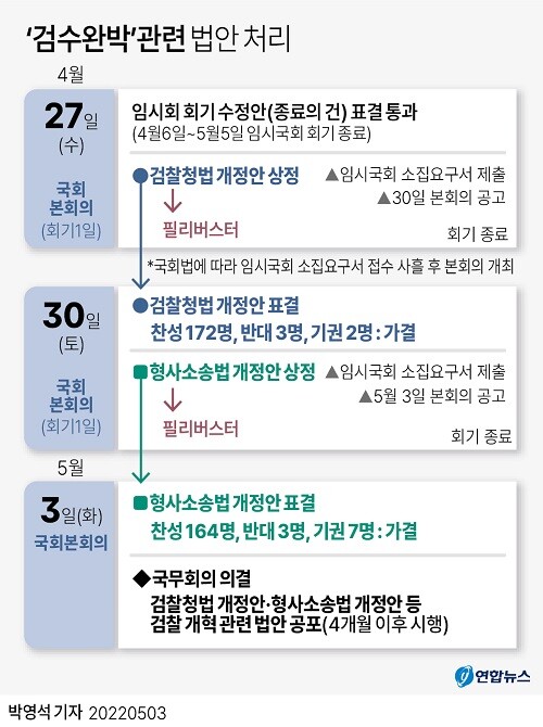 ▲ '검수완박' 관련 법안 처리. [그래픽=연합뉴스] |