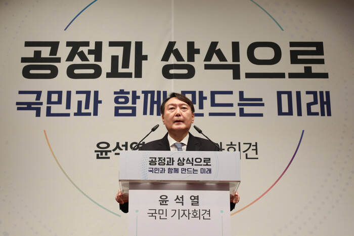 윤 전 총장은 출마 기자회견문 내내 현 정권을 강한 어조로 비판했다.