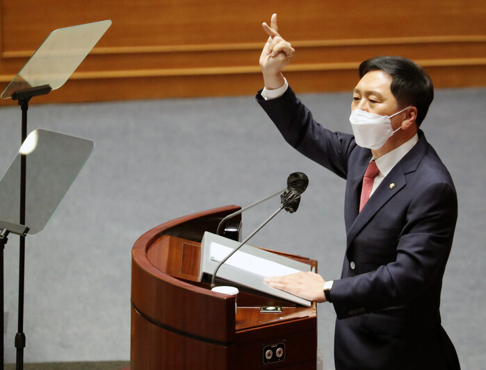 | ▲ 교섭단체 대표연설을 하고 있는 국민의힘 김기현 원내대표. [사진=연합뉴스] |