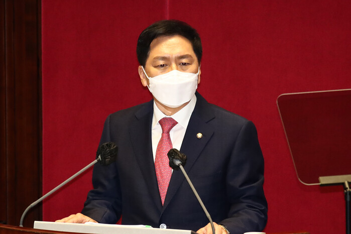 | ▲ 국민의힘 김기현 원내대표가 17일 서울 여의도 국회에서 열린 본회의에서 교섭단체 대표연설을 하고 있다. [사진=연합뉴스] |