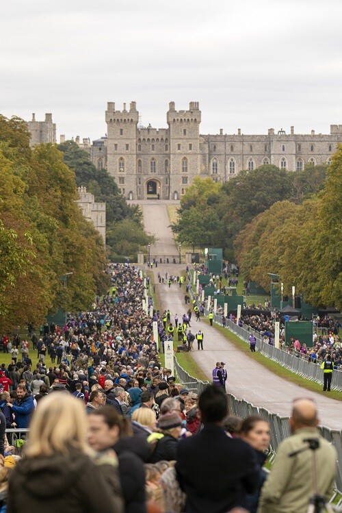 | ▲ 엘리자베스 2세 영국 여왕의 장례식을 보기 위해 모인 추모객들이 19일(현지시간) 윈저성 앞에 몰려들고 있다. 여왕은 세인트 조지 예배당 내 조지 6세 기념 예배당에 안장될 예정이며 지난 4월 먼저 세상을 떠난 남편 필립공 옆에 묻힌다. [윈저성 EPA=연합뉴스] |