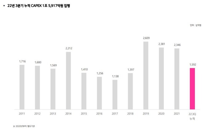 이 CFO는 이날 컨퍼런스 콜에서 “3분기까지 누적된 CAPEX가 전년동기 대비해서 초과됐으나 분기별로 나누다 보면 이런 현상이 나타날 수 있다”고 말했다.