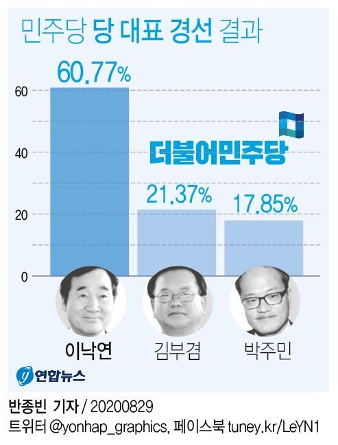 ▲ 민주당 당 대표 경선 결과. [그래픽= 연합뉴스] |