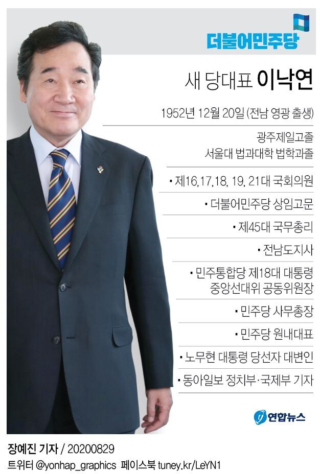 ▲ 더불어민주당 새 당대표 이낙연 약력. [그래픽= 연합뉴스] |