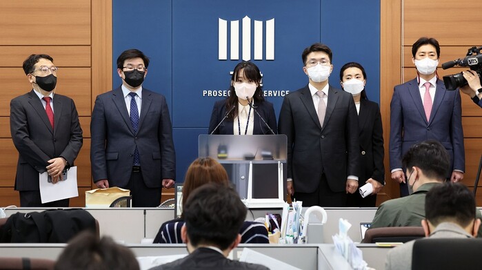 ▲ 20일 오전 서울 서초동 서울고검에서 남소정 검사(울산지검)가 '검수완박'(검찰 수사권 완전 박탈) 입법에 대응하기 위해 열렸던 전국 평검사 대표회의 결과에 대해 브리핑하고 있다. [서울=연합뉴스] |