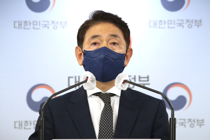 ▲ 국민권익위원회 김태응 부동산거래 특별조사단장이 7일 오후 정부서울청사 브리핑실에서 더불어민주당 소속 국회의원과 그 가족의 부동산거래 전수조사 결과를 발표하고 있다. [사진=연합뉴스] |