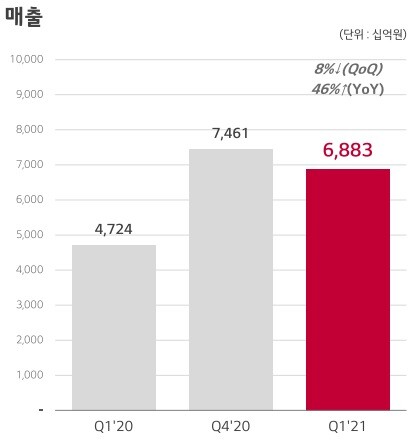 LG디스플레이는 28일 올해 1분기 경영실적 매출 6조8828억원, 영업이익 5230억원을 기록했다고 발표했다. 당기순이익은 2658억원이었다.