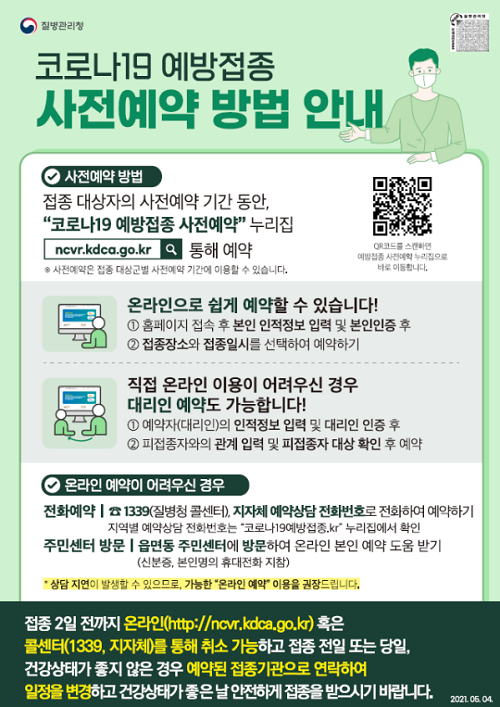 ▲ 코로나19 예방접종 사전예약 방법 안내. [질병관리청] |