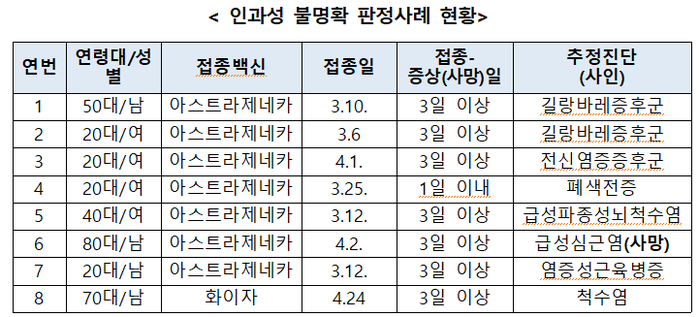 이로써 현재까지 인과성이 불명확한 사례는 총 8건이 됐다.