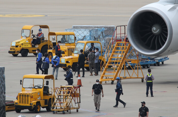 ▲ 6일 오후 영종도 인천국제공항 화물터미널에서 관계자들이 모더나 사의 백신 255만2천회분을 옮기고 있다. [영종도=연합뉴스] |