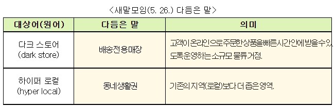 앞서 지난달 26일에는 ‘다크 스토어’와 ‘하이퍼 로컬’을 다듬었다.