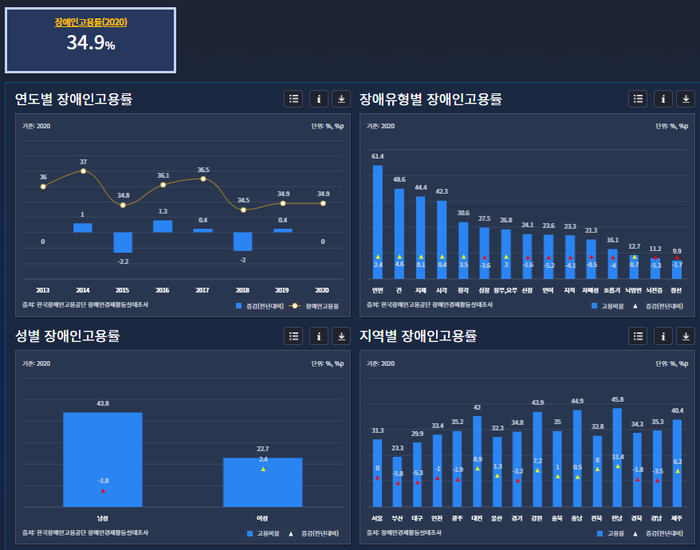 | ▲ 2020년 장애인 고용률. [출처=고용노동부] |