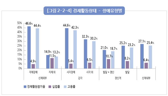 | ▲ 2020년 5월 기준 장애유형별 경제활동 상태. [출처=한국장애인고용공단] |