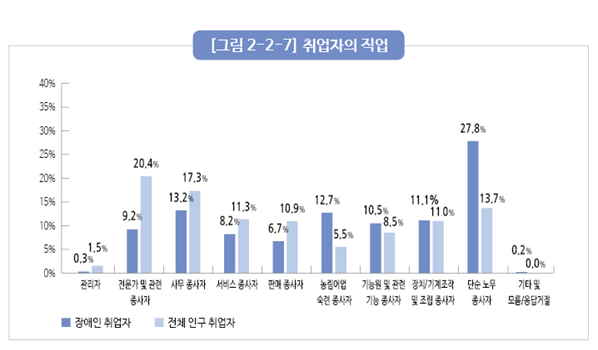 | ▲ 2020년 5월 기준 취업자의 지위. [출처=한국장애인고용공단] |