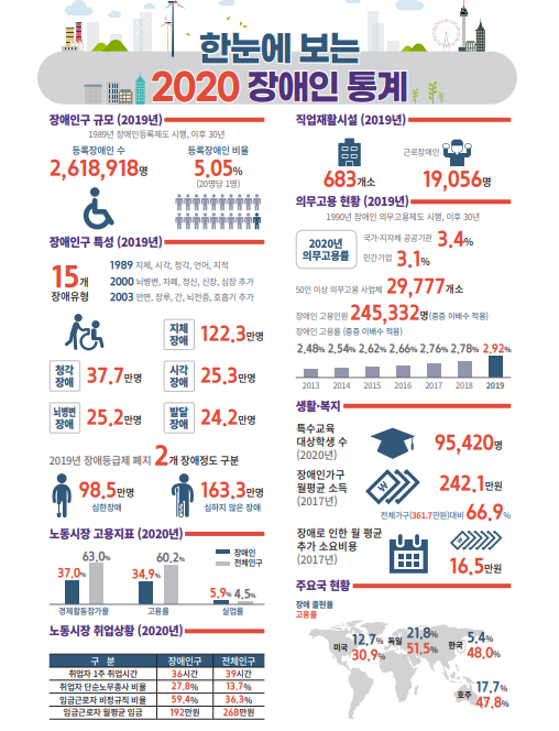 | ▲ 한눈에 보는 2020 장애인 통계. [출처=한국장애인고용공단] |