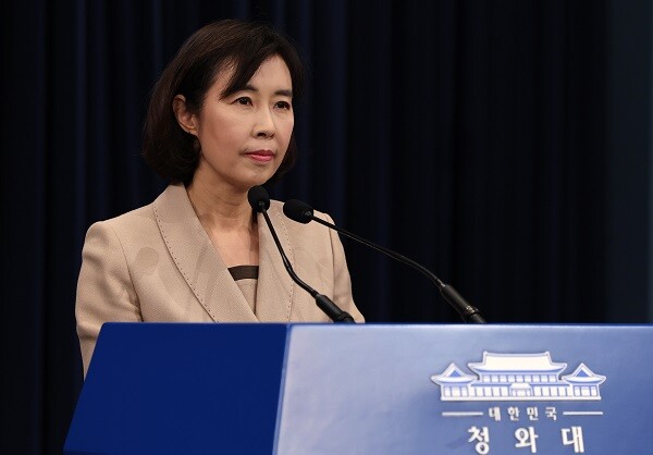 ▲ 박경미 청와대 대변인이 18일 오전 춘추관에서 "문재인 대통령이 김오수 검찰총장의 사표를 반려했다"고 밝히고 있다. [사진=연합뉴스] |