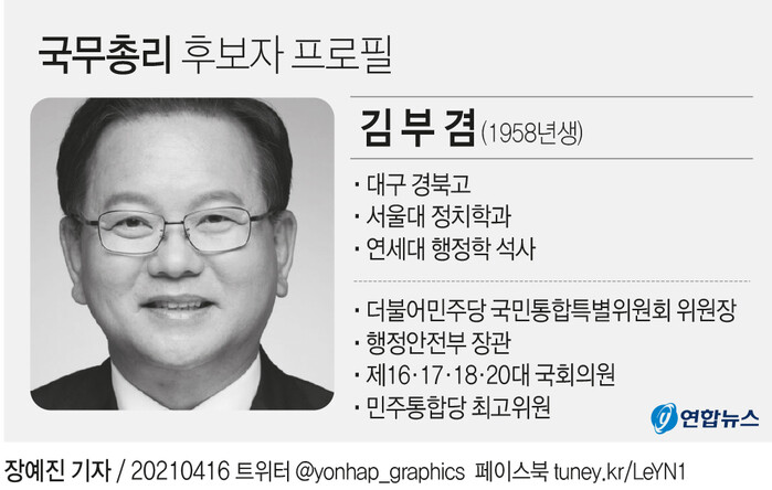 ▲ 김부겸 국무총리 후보자 프로필. [그래픽= 연합뉴스] |