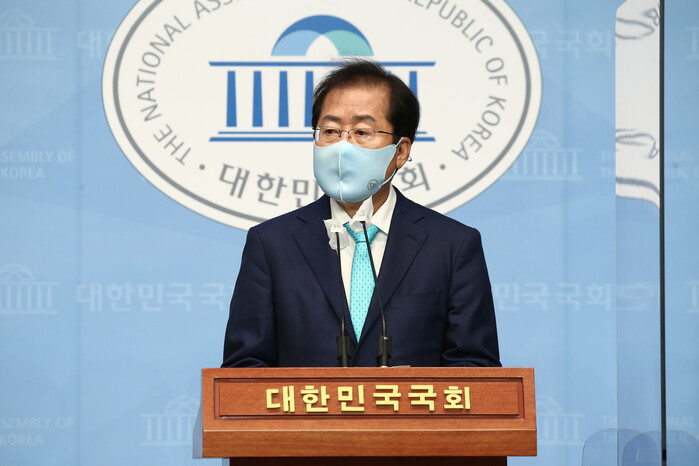 ▲ 국민의힘 복당이 결정된 무소속 홍준표 의원이 24일 국회 소통관에서 기자회견을 하고 있다. [사진=연합뉴스] |