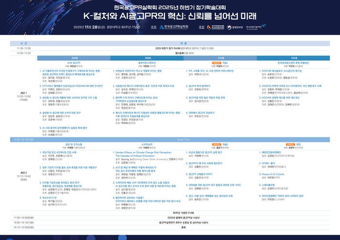 [메가경제=이준 기자] 한국광고PR실학회는 오는 28일 서울 광운대학교 80주년 기념관에서 2025년 한국광고PR실학회 하반기 정기학술대회를 개최한다고 밝혔다. 이번 학술대회는 ‘K-컬쳐와 AI 광고PR의 혁신: 신뢰를 넘어선 미래’라는 대주제로 진행된다.