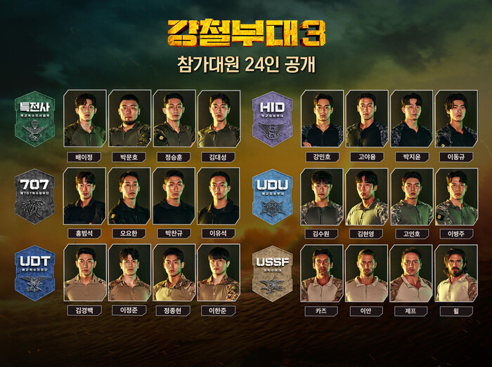 ▲ '강철부대3'에 참전하는 부대원 24인의 정체가 공개됐다. [사진=ENA, 채널A] |
