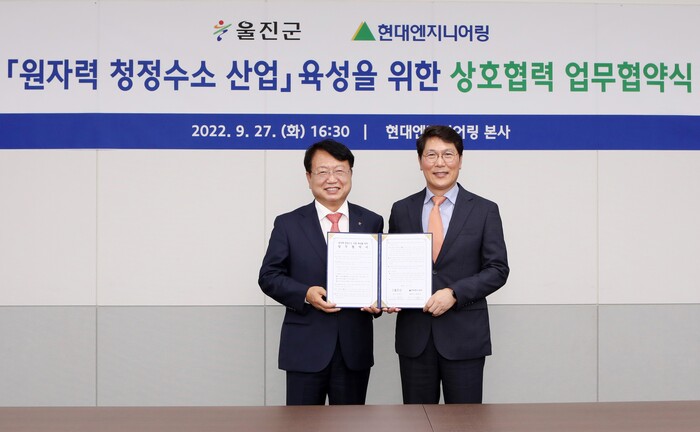 현대엔지니어링은 지난 27일 울진군과 원자력 청정수소 산업 육성을 위한 업무협약(MOU)을 맺었다고 28일 밝혔다.