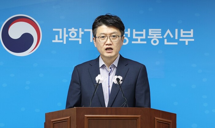 ▲ 김기석 과학기술정보통신부 우주기술과장이 22일 오전 세종시 정부세종청사에서 누리호 성능검증위성과 지상국 간 교신과 관련해 브리핑하고 있다. [세종=연합뉴스] |