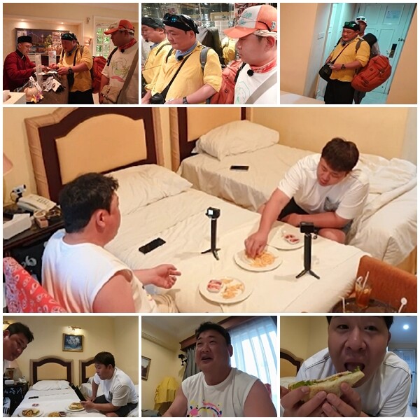 유쾌한 분위기 속, 호텔 룸에 들어선 김준현-문세윤은 짐을 내려놓지도 않은 채 곧장 ‘룸서비스 메뉴판’을 통독한다. 불과 2시간 전에 ‘1인 3메뉴’를 클리어 한 ‘먹보 형제’지만, 곧바로 ‘진지 뚱’ 모드를 켜고 메뉴판 열공에 나선 것. 급기야 두 사람은 어설픈 영어로 직접 샌드위치와 감자튀김을 ‘룸서비스’로 주문한다.