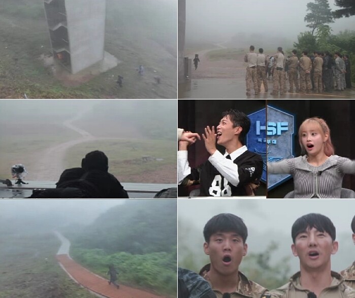 모두의 기대 속, 사전 미션이 시작되는데 갑자기 장대비에 안개까지 덮쳐 기상 상황이 최악으로 치닫는다. 표적을 제대로 볼 수조차 없는 극한의 상황에 동료 대원들도 “아예 안 보인다”며 걱정한다. 하지만 한 출전 대원은 엄청난 스피드로 ‘저격 포인트’까지 전력 질주해 경탄을 자아낸다. 김성주는 “4층 건물을 단 9초 만에 올라갔다”며 감탄하고, 다른 대원들도 “무릎을 박살낼 각오로 뛰어가서 경악했다”며 혀를 내두른다. 그런데 이 대원은 ‘저격 포인트’에서 저격 소총을 꺼내든 뒤, 계속 사격을 하지 않아 궁금증을 일으킨다. 촌각을 다투는 상황에서 식은땀만 쏟는 이 대원의 모습에 MC군단은 “이게 변수다…”라며 안타까워한다.