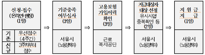 | ▲ 취약계층 특고 및 프리랜서 긴급 생계비 지원 추진절차. [서울시 제공] |