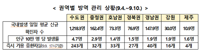 ▲ 권역별 방역 관리 상황. [출처=보건복지부] |