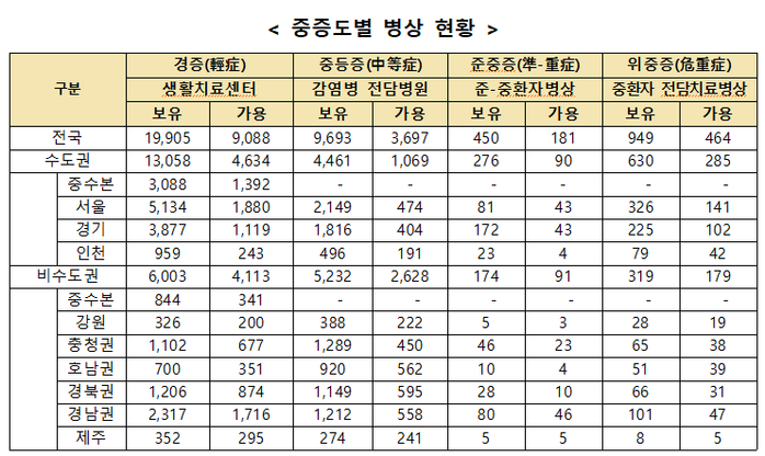 ▲ 중증도별 병상 현황. [출처=보건복지부] |