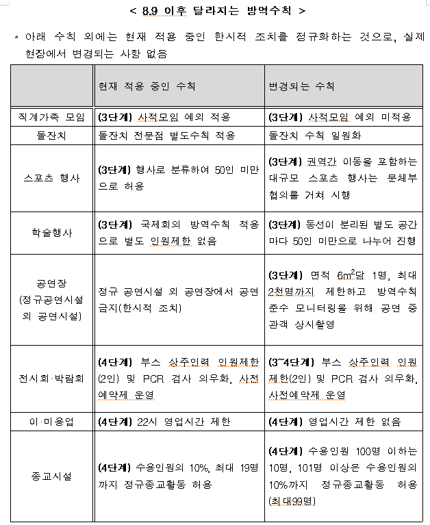 ▲ 8월 9일 이후 달라지는 방역수칙. [출처=중앙재난안전대책본부] |