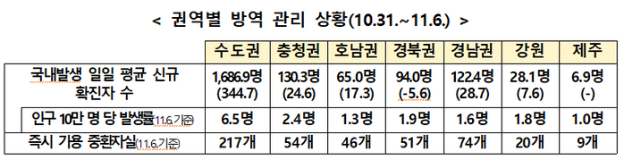 ▲ 권역별 방역 관리 상황. [보건복지부 제공] |