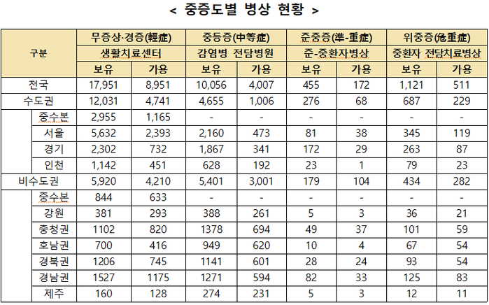 ▲ 중증도별 병상 현황. [보건복지부 제공] |