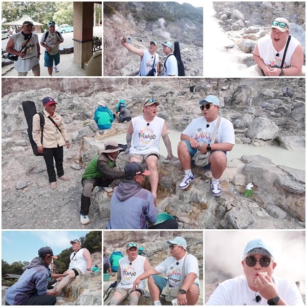 이후, 김준현-문세윤은 본격적으로 ‘활화산 즐기기’에 돌입한다. 먼저, 두 사람은 펄펄 끓는 유황온천 물에 달걀을 넣어 삶아 먹는 신박한 ‘먹방 코스’를 체험한다. 그런가 하면, 가이드가 알려준 일명 ‘담배 매직’과 리얼 방귀의 컬래버도 시도해 ‘대환장 케미’를 발산한다. 나아가 김준현은 ‘까와 도마스’의 핵심 코스인 ‘유황 머드 마사지’도 도전한다. 그런데, 김준현의 한창 다리를 주물러주던 마사지사가 갑자기 그의 발가락을 하나하나 ‘뽕’ 소리가 나게 따기 시작해 웃음을 안긴다. 이에 문세윤은 “미니족 뽑기를 하고 있다”고 리얼(?)하게 중계하고, 급기야 마사지사는 칫솔로 전복을 닦듯이, 김준현의 발톱을 샅샅이 씻는다. 민망한 상황의 연속에 김준현은 “이렇게 하시면, 진짜 식재료 같은데요~”라고 자폭해 모두를 빵 터지게 만든다.