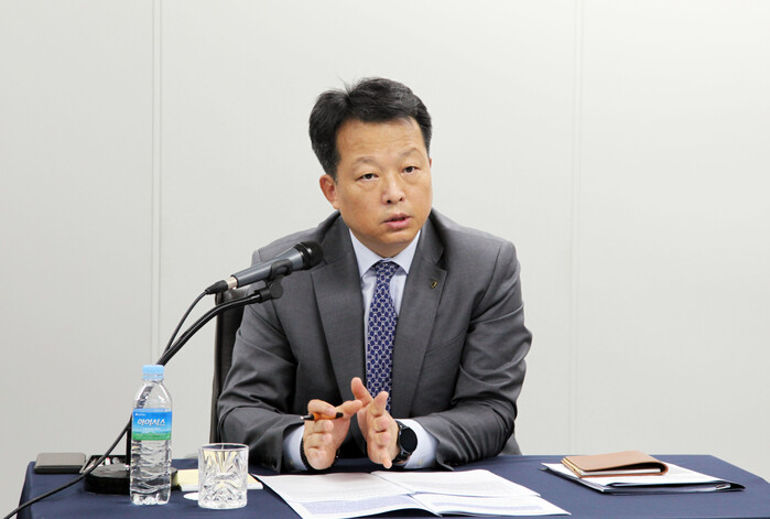 ▲ 최대현 산업은행 부행장이 11일 온라인 기자간담회에서 아시아나항공 매각 무산 사실을 밝히고 있다. [사진=산업은행 제공] |