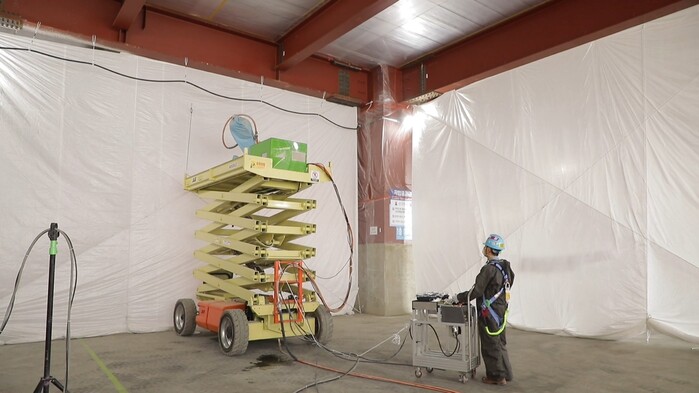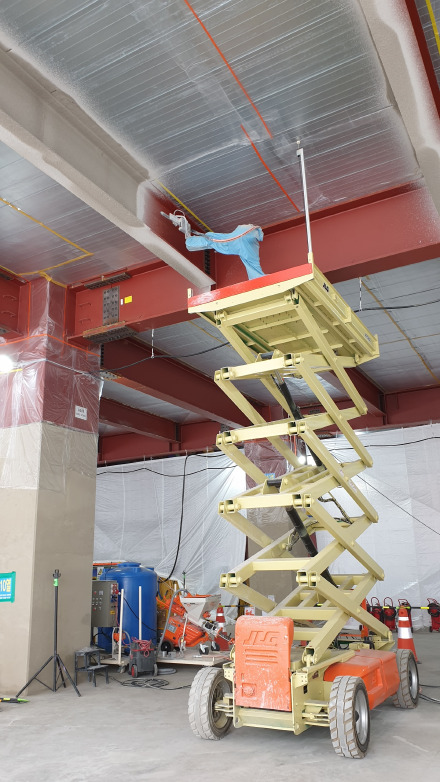 내화뿜칠은 건물의 철골 기둥과 보에 내화재(耐火材)를 덧칠해 높은 열에도 견딜수 있게 하는 필수 작업이다. 이 작업은 근로자가 유독성 물질에 노출될 수 있는 데다 높은 곳에서 작업해야 하는 상황이 많아 대표적인 고위험 작업으로 분류된다.