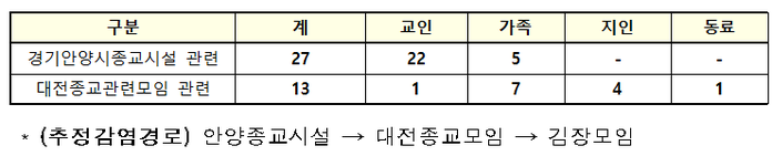 ▲ 경기 안양시 종교시설 관련 확진자 현황. [출처= 중앙방역대책본부] |