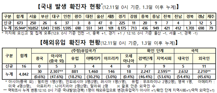 지역발생 673명 중 수도권에서 전체의 76.1%인 512명이 나왔고 비수도권에서는 161명이 발생했다. 전날보다 수도권은 23명, 비수도권은 4명 늘었다.