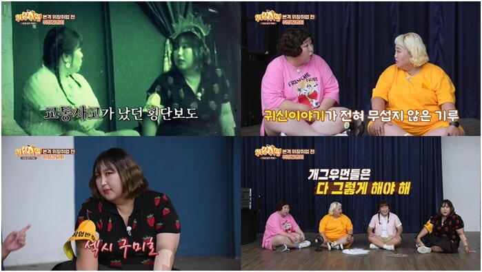 이날 홍윤화의 제안으로 ‘귀신의 집’에 취업하게 됐다는 사실을 뒤늦게 안 3인방은 “귀신, 진짜로 싫어한다”며 진저리를 친다. 특히 풍자는 “우린 (분장 안하고) 그냥 지나가기만 해도 사람들이 겁내”라고 너스레를 떨어 짠내 웃음을 안긴다.