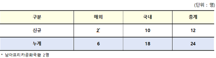 특히 이날은 남아프리카공화국 발(發) 2명이 최초로 확인됐고, 처음으로 인천 이외의 지역에 사는 감염자(충북)도 나와 전국 확산에 대한 우려를 키웠다.