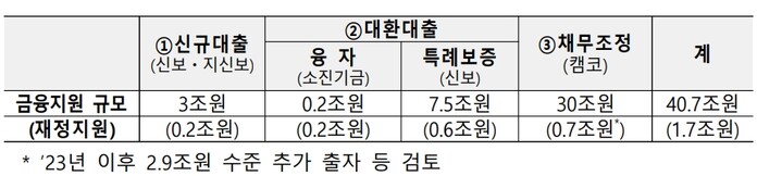 잠재부실채권 30조원을 매입해 10조원 수준의 채무조정하는 방안도 추진하기로 했다.