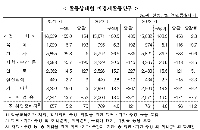 ▲ 활동상태별 비경제활동인구. [통계청 제공] |