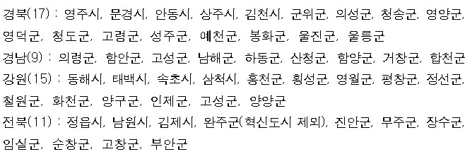 ▲ 강원도, 전라북도, 경상북도, 경상남도의 시범적용 지역. [출처=보건복지부] |