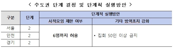 ▲ 수도권 단계 결정 및 단계적 실행방안. [출처=보건복지부] |