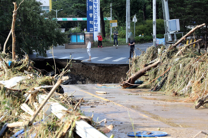 올해 우리나라에 상륙한 첫 태풍이었던 오마이스는 지난달 23일 밤 경남 고성 부근에 상륙해 경상권 내륙을 관통하며 곳곳에 ‘물폭탄’을 쏟으며 이 지역에 큰 피해를 입혔다. 여기서 그치지 않고 이후에도 집중호우가 이어지며 오마이스가 할퀴고 간 상처에 피해를 더했다.