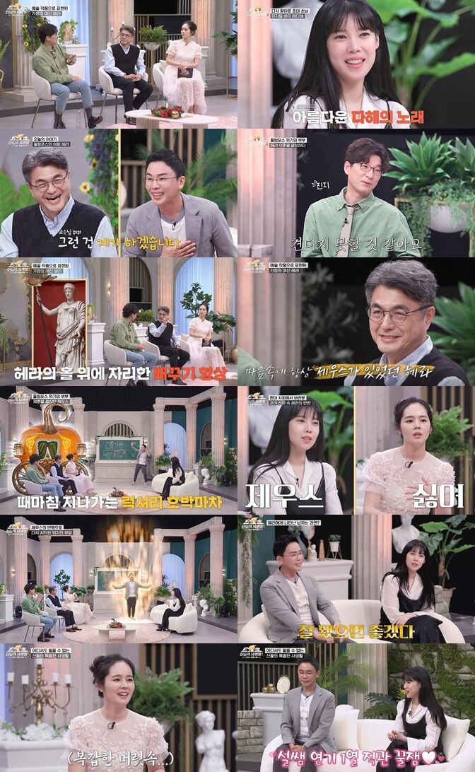 25일(목) 방송된 MBN ‘신들의 사생활-그리스 로마 신화2’(연출 송성찬, 이하 ‘신들의 사생활2’) 8회에서는 한가인-설민석-김헌-이창용과 게스트 배다해가 ‘가정의 여신’ 헤라와 남편 제우스의 이야기를 주제로 열띤 토론을 벌이는 모습이 펼쳐졌다. 특히 ‘질투의 화신’으로 알려진 헤라의 남모를 속사정과 가정사를 통해, 부부 사이지만 협력 관계에 있는 신들의 세계와 그 이면의 의미까지 고찰해 ‘뇌호강’과 깨달음을 안겨주었다.