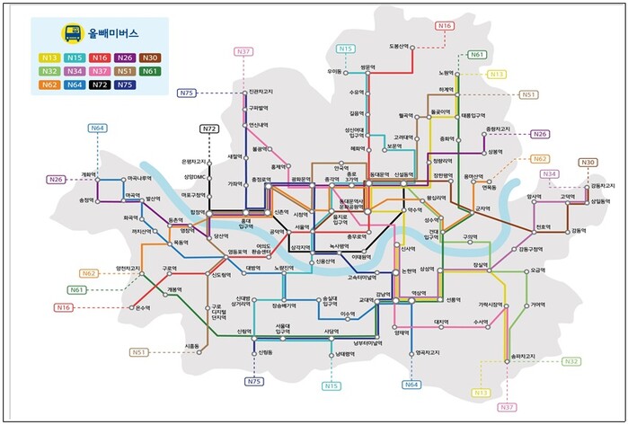 ▲ 올빼미버스 노선도. [서울시 제공]