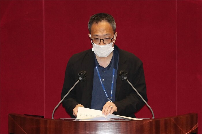 ▲ 더불어민주당 박주민 의원이 27일 검찰 수사권과 기소권 분리 법안 처리를 위해 열린 국회 본회의에서 제안 설명을 하고 있다. [공동취재=연합뉴스] |